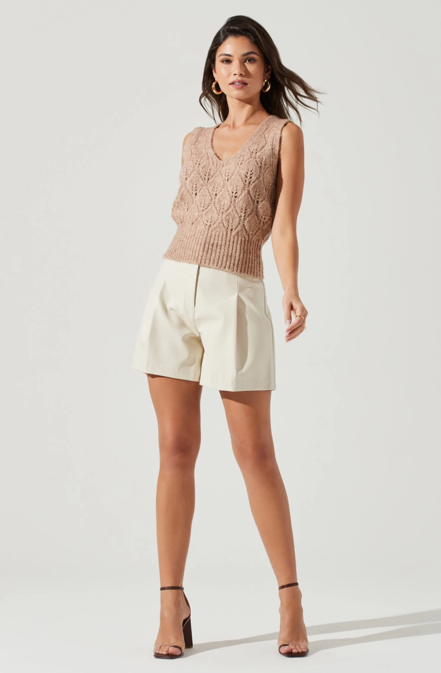 Sweater vests are back in the picture this season! The Carter Vest features a soft knit construction that starts with a V neckline and leads to a statement trellis stitch design throughout. Sleeveless. Unlined.