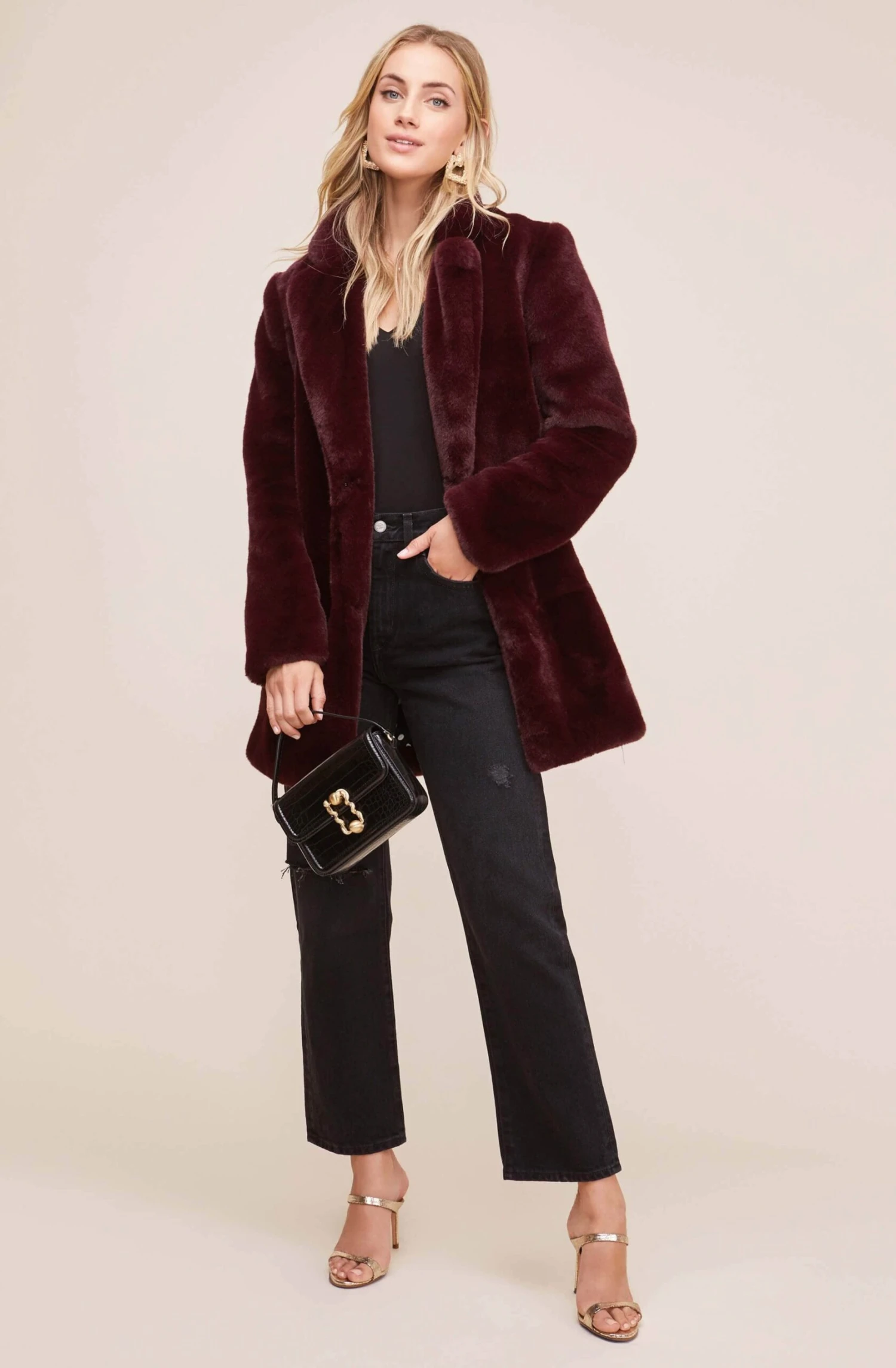 Bundle up in the Cleo Coat! This luxe faux fur style features a notched collar, long sleeves and side pockets.