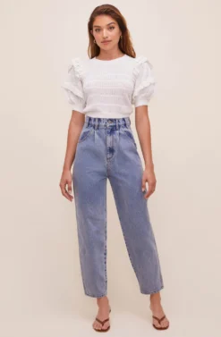 From desk to date night, the Lorette Skirt is a versatile wardrobe essential. It features a faux leather construction with an attached tie waist belt and smocking at the back of the waist. Tonal front button placket leads to a vented hem. Functional hip pockets.