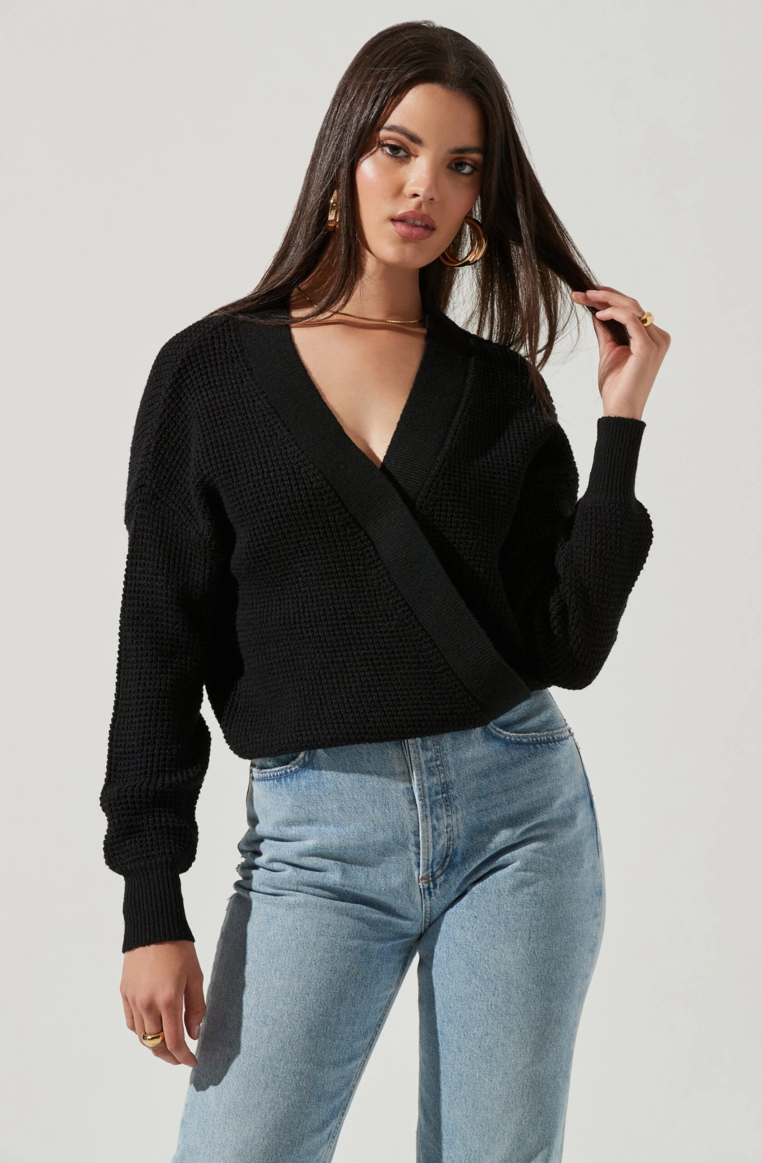 The Stephanie Sweater features a V neckline and surplice front. Long sleeves. Relaxed fit.